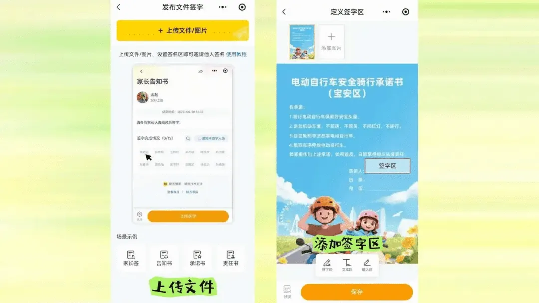 该功能已应用于多个社区、学校的电动车新规安全告知书签收、承诺书签署等场景。无需下载,直接点开使用,对不熟悉电子设备的中老年居民也很友好。最关键的是,文件签字功能对个人用户完全免费,街道、社区和学校不用增加任何成本。