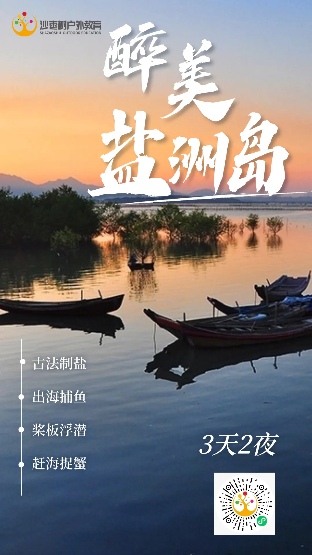 【活动内容】古法制盐研学、出海撒网捕鱼、观鹭鸟、红树林研学、赶海挖蟹、黑排角踏浪、山林寻宝