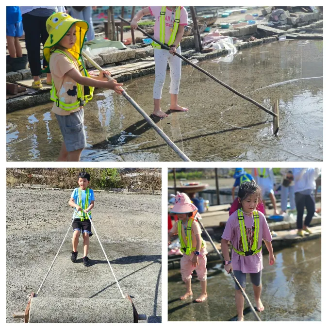 盐场老伯世代以制盐为生,是孩子们心中的魔法师,一说起制盐的历史及过程,老伯全身都散发着光彩和热爱,恨不得把自己所知道的制盐知识都讲得明明白白,干一行爱一行,在老伯身上体现得淋漓尽致。