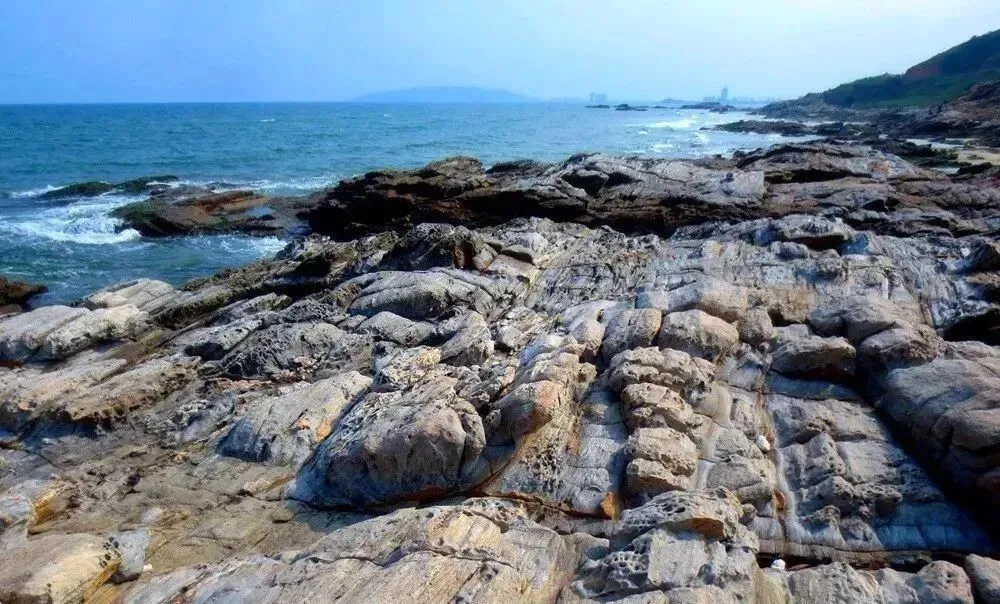 这里有一条独特的海岸线,因为海岸岩石为黑褐色玄武岩,并呈条状,非常独特,被驴友起名为“黑排角”。涨潮时因为海势地理位置特殊,必有壮观的海浪冲击,溅起的巨大的白花海浪,又能见到连绵不断的层层鱼纹型长浪。