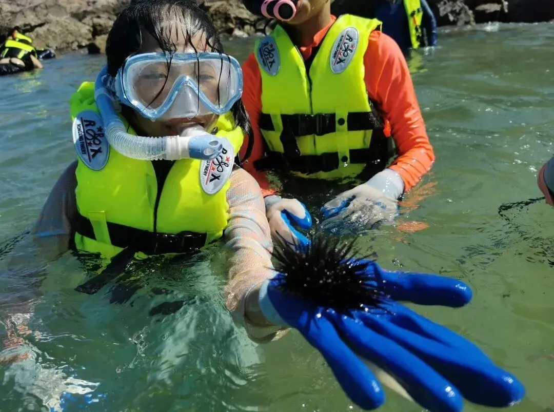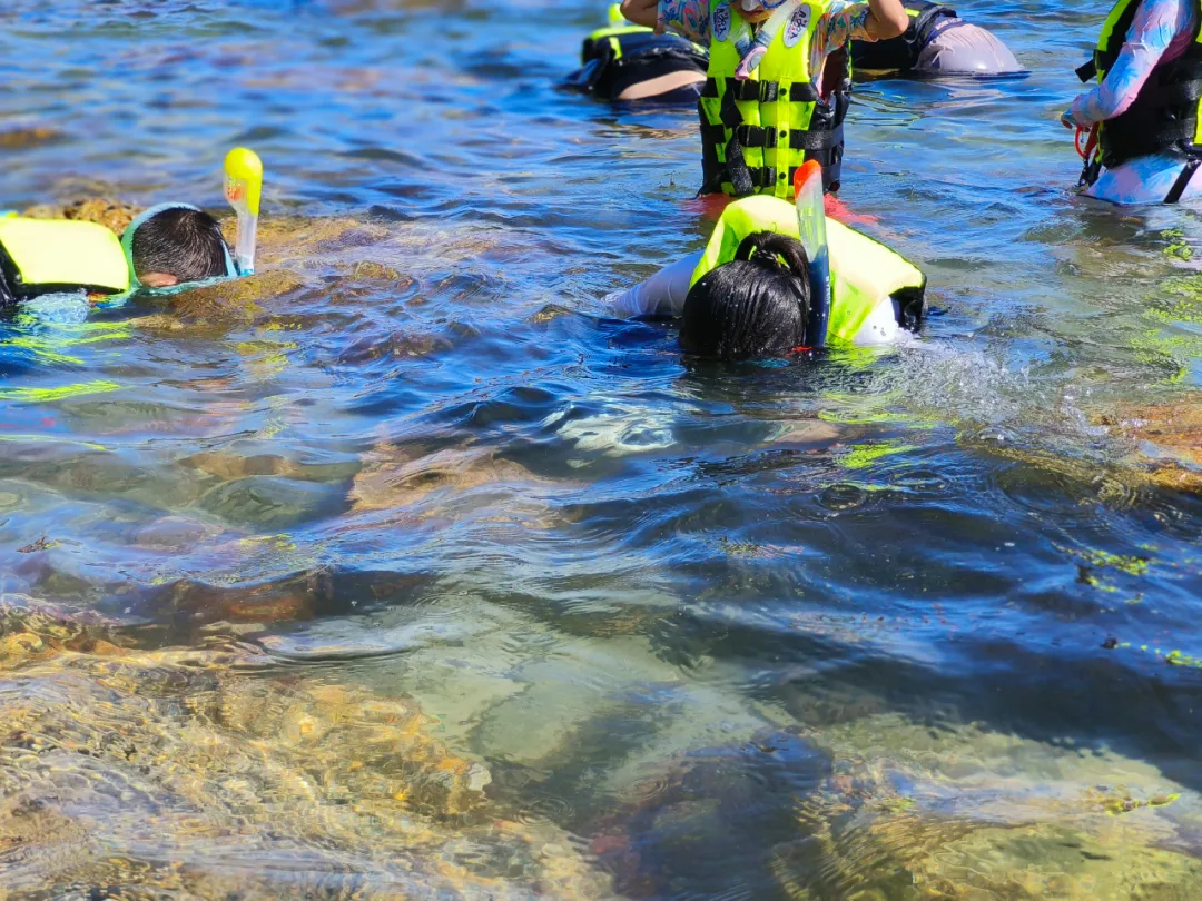 成群的小鱼穿梭在摇曳的海草间,色彩斑斓的贝壳藏在细腻的沙粒中,偶尔还能遇见紫莹莹的海胆,像一颗颗会动的小星球,伸手就能与这片海底生灵近距离互动,那种与自然相拥的快乐,是陆地游玩从未有过的体验!