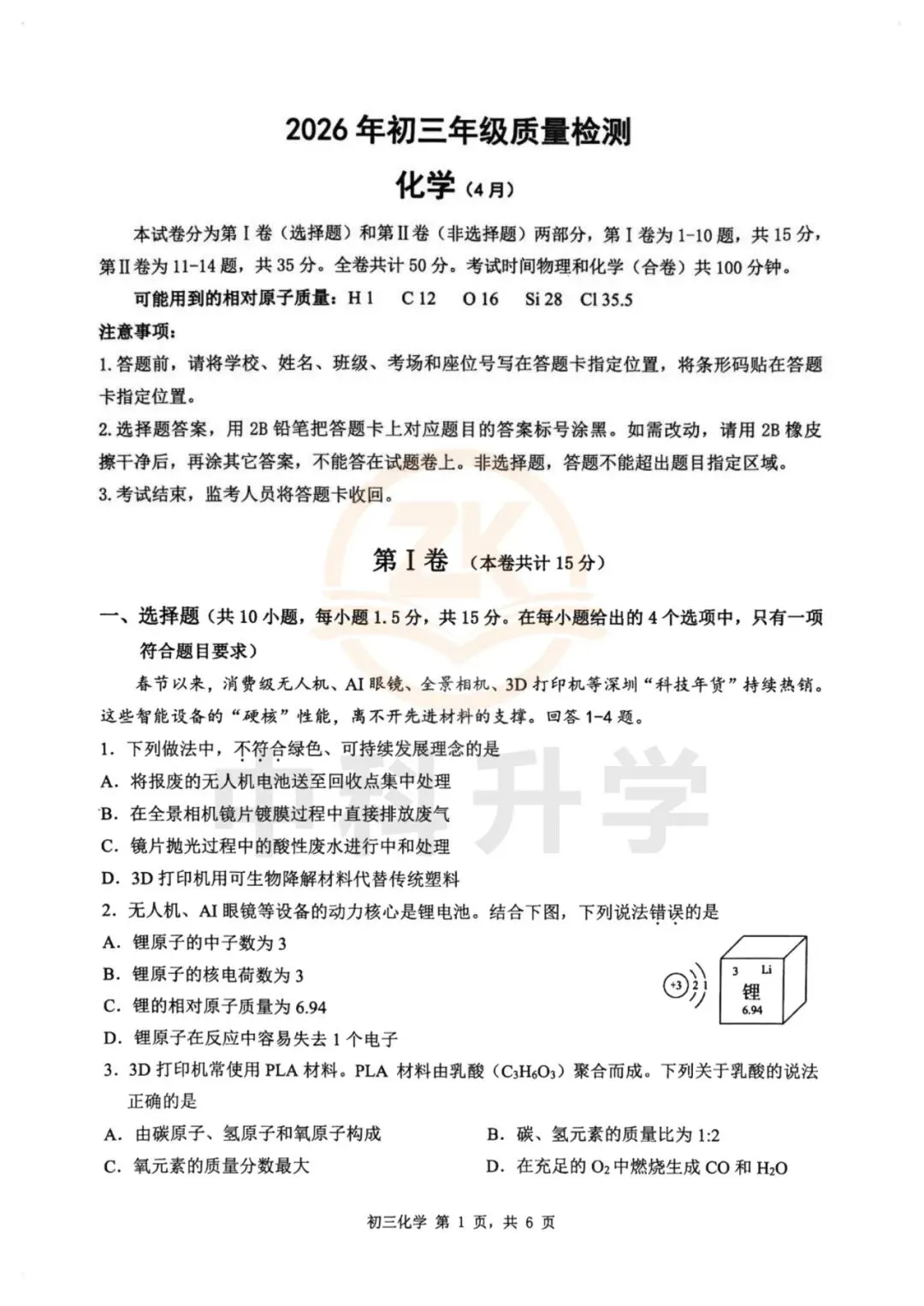 2026年4月深圳34校初三二模【化学】真题与答案