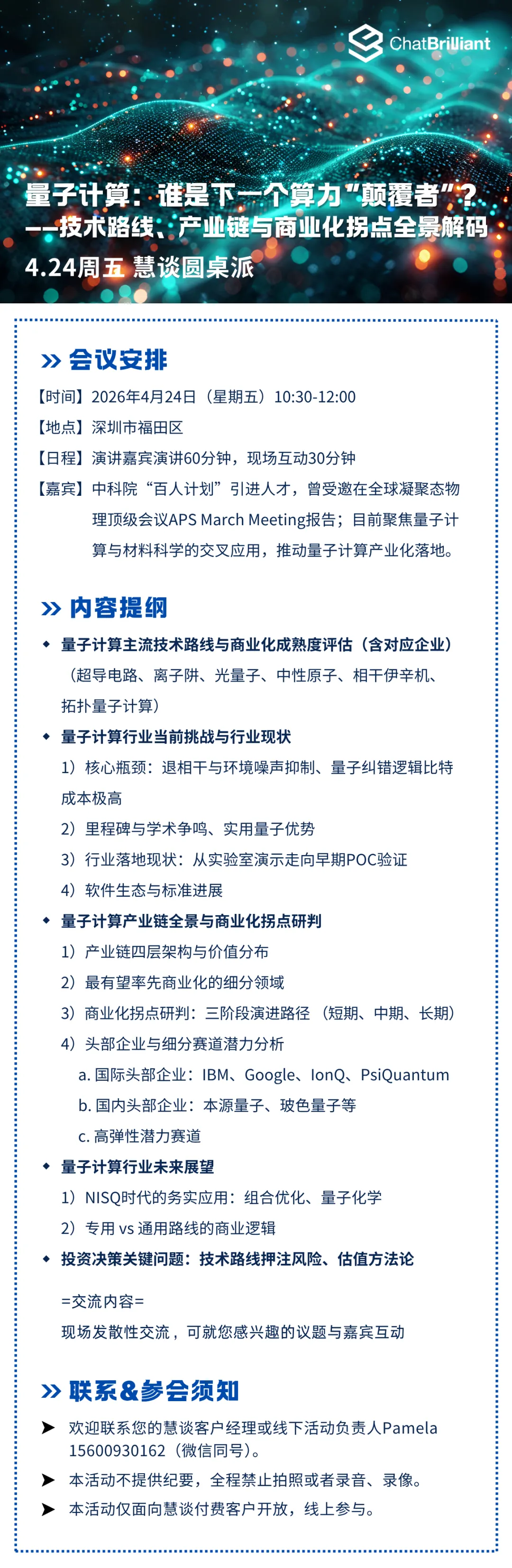 【4月24日 深圳】量子计算:谁是下一个算力“颠覆者”?——技术路线、产业链与商业化拐点全景解码