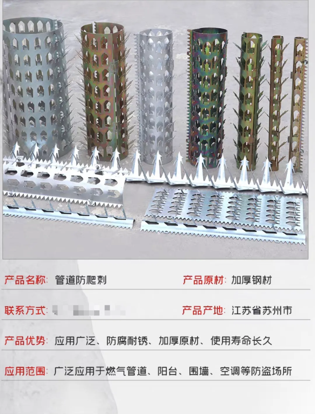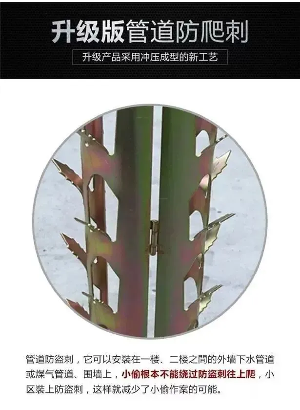 奥一新闻记者在网购平台查询发现,业主们所反映的“金属倒刺”实为“管道防爬刺”,此类产品多应用于燃气管道、阳台、围墙等防盗场所。