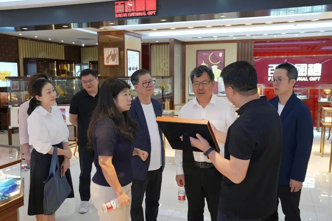在国礼文创展厅,一件件融合了文化底蕴与时代审美的文创展品,将中国传统美学与现代设计理念深度融合,并通过以匠心工艺重塑黄金珠宝的情感表达与精神承载,生动诠释了百泰集团“文化黄金·时尚黄金”的品牌理念。调研组一行饶有兴致地询问了产品创意特点,对百泰集团在文创领域的持续探索表示高度认可。