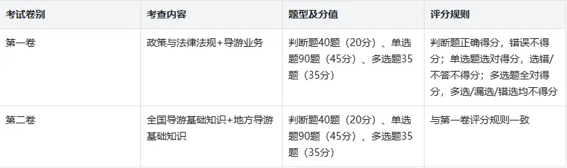 满分100分,主要考查礼貌礼仪、语言表达、景点讲解、服务规范、应变能力和综合知识,面试合格线通常为60 分,部分省份会根据当年情况微调合格线。