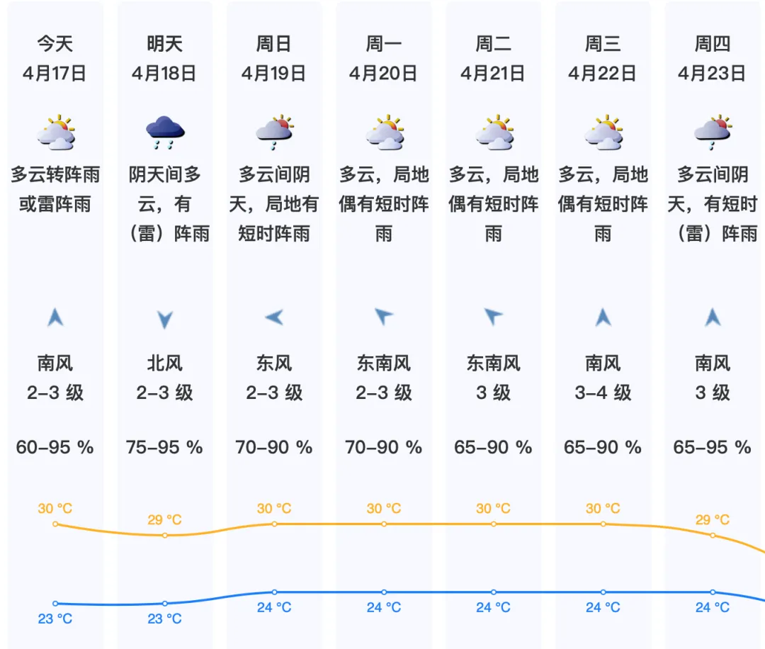 未来三天深圳有(雷)阵雨