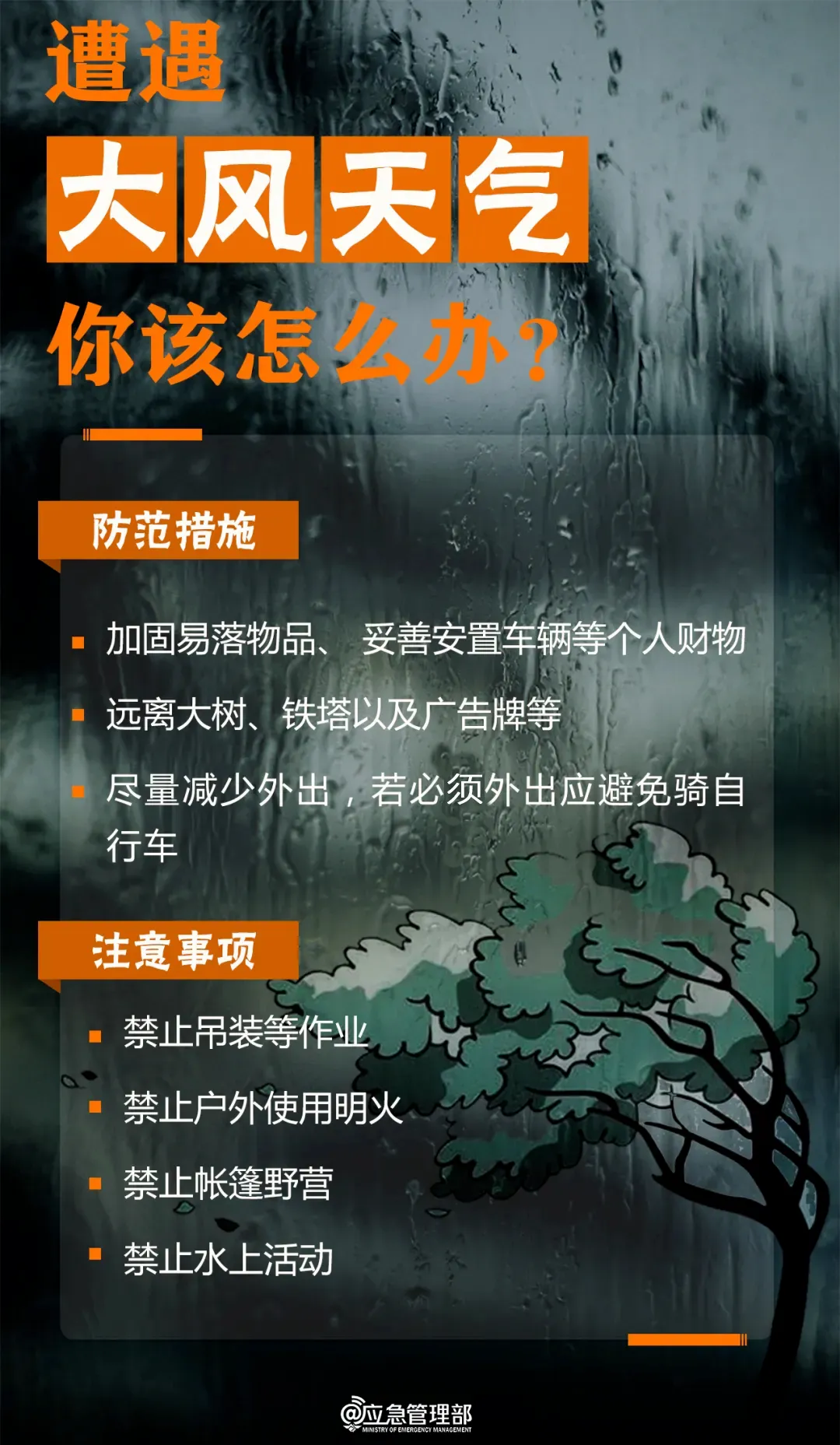 远离广告牌、大树、临时构筑物等危险区