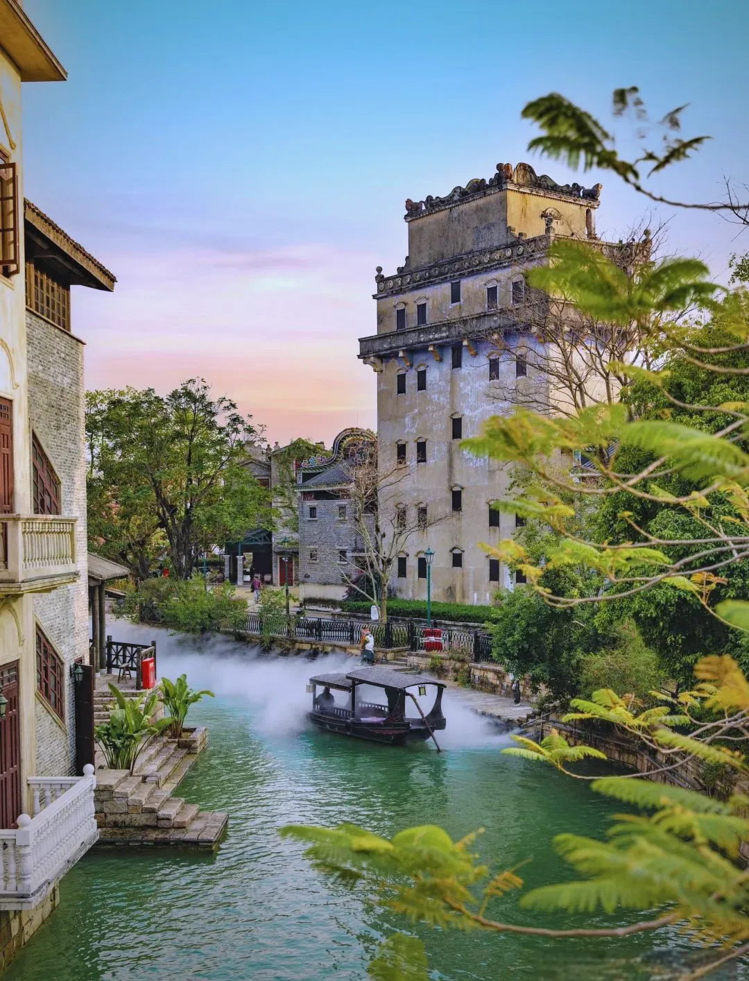 古镇内,手摇船在河道上缓缓前行,两岸的建筑倒映在水中,别有一番韵味。游客可以乘坐手摇船游览古镇,感受水乡风情;也可以在街边的小店品尝特色美食,如开平烧肉、豆腐角等。此外,古镇内还有不少博物馆和展览馆,能让人深入了解侨乡的历史与文化。