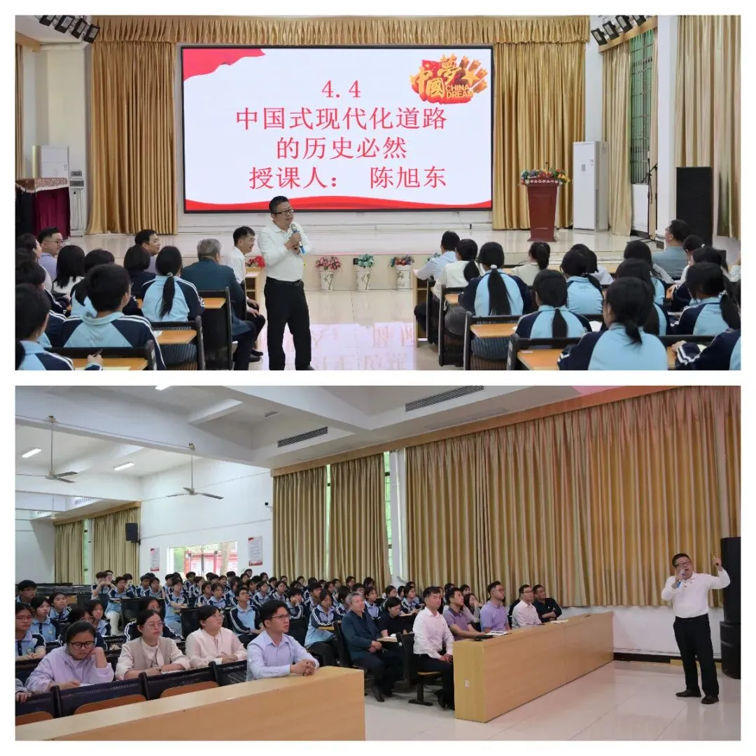 陈旭东书记在学校报告厅为二中师生带来一堂立意深远的思政课,他以“中国式现代化的历史必然性”这一时代命题,从中国古代GDP和人口数量的阶段性变动数据,并列举近代历史上,欧美国家为维持自身霸权地位,常对新兴大国采取阻拦措施具体案例,展现了中国式现代化的历史必然性。以大历史观打开崭新叙事,运用中华文明史展示中华优秀传统文化底蕴,运用中国共产党人接续奋斗的历史展现社会进步的壮阔征程,在史实钩沉中增强学生的历史自觉与时代使命感,进一步增强了师生的文化自信与使命担当,引发了强烈的共鸣与深刻思考。
