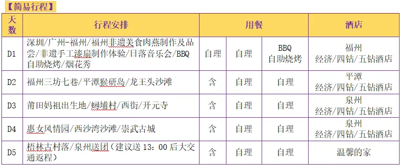 第一天 | 深圳/广州-福州-入住酒店 餐:晚住宿:福州酒店 |