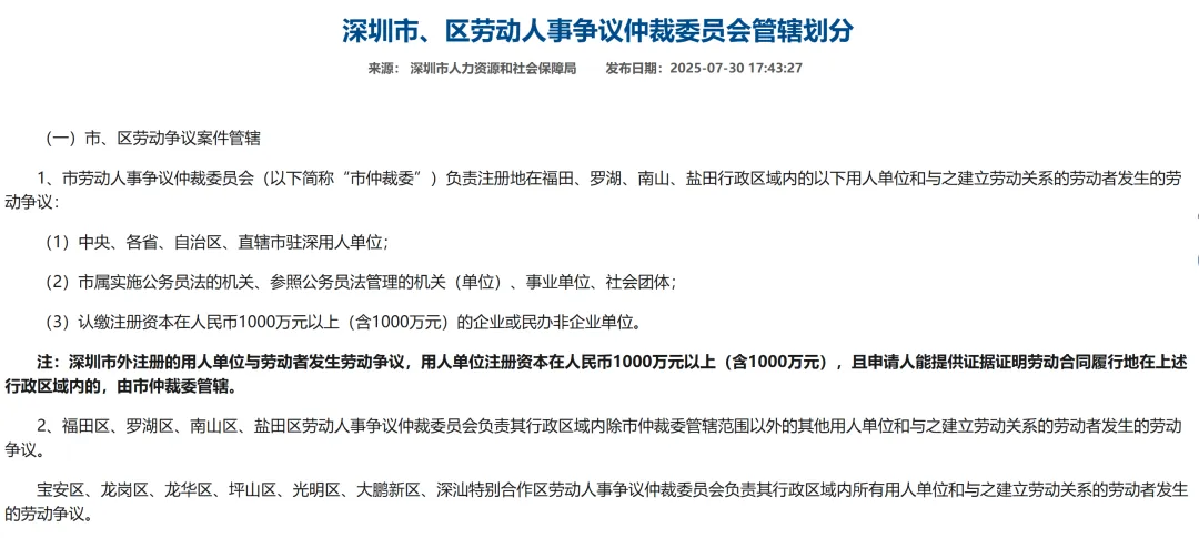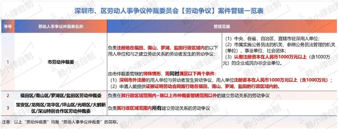 一、《深圳市、区劳动人事争议仲裁委员会管辖划分》