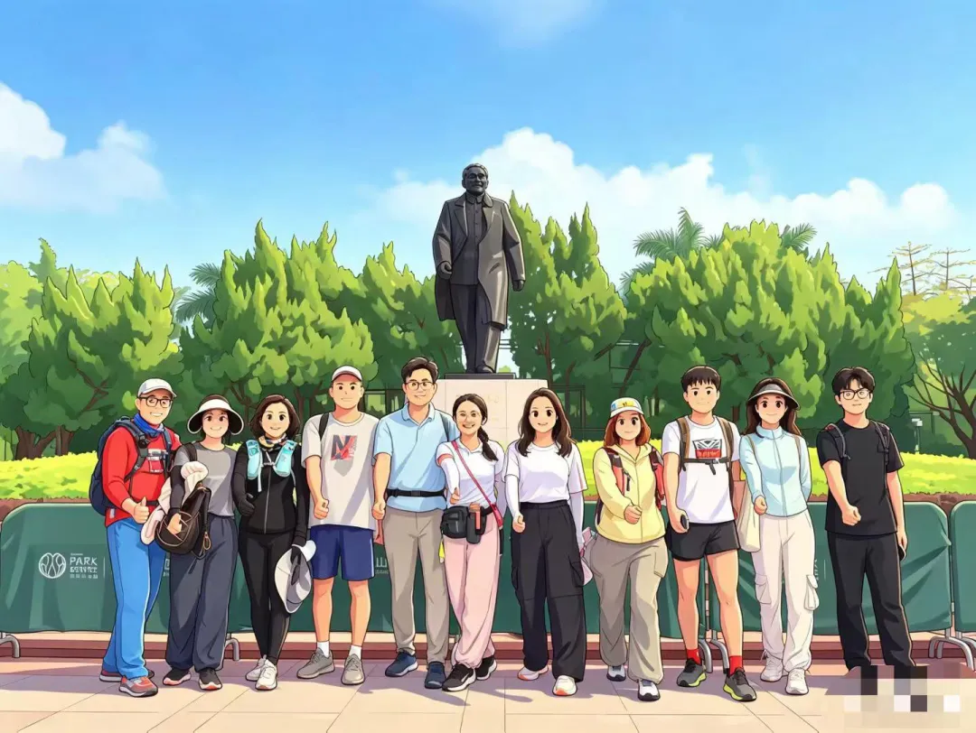 作为深圳十峰之一,海拔才100多米,10分钟就能登顶。我们顺道打卡深圳十峰,也顺便吐槽了打卡的老坑点——除了莲花山,绝大多数深圳十峰打卡点都没信号,哪怕同时带联通、电信两张卡都没用,不知道移动卡是不是那个真·打卡神器。我们把大合影转成了AI青春漫画,一群不同年龄的人,强行凑了一波青春感,发圈好多人来要滤镜链接😂。