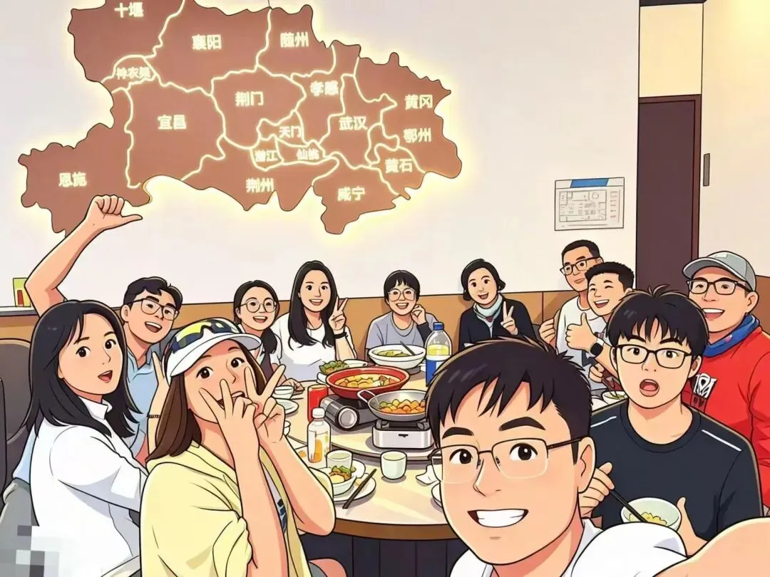 我们提前预定了「屋里人湖北菜」,湖北方言里"屋里人"就是家里人的意思,店名就够亲切。出发前我们在半路买了一整个冰西瓜,餐前切开分着吃,户外出汗之后一口冰西瓜下去,真的是满分享受,又解渴又解辣。最后所有人一起AA,分量刚好全部吃完,还完美践行了光盘行动。