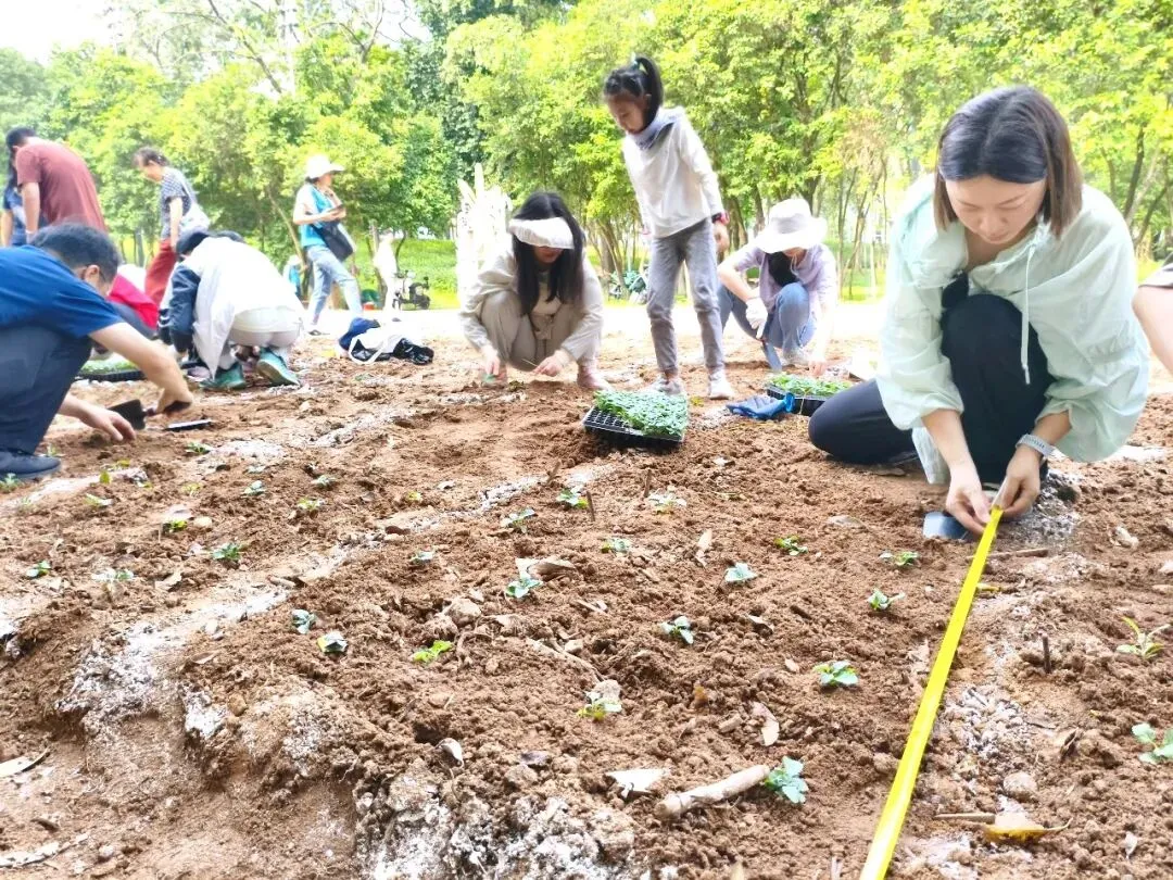 我虽然没能报上名,但也加入了种花的队伍,一起帮忙。种完了,还用自带的塑料瓶,给花苗浇上水。看着亲手种下的小苗整整齐齐地铺在花田里,特别有成就感。