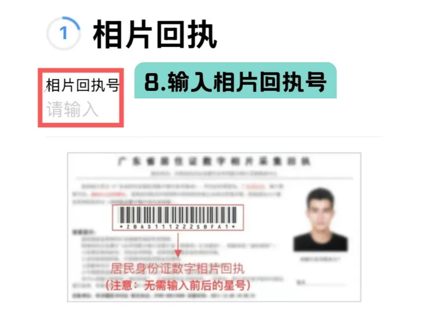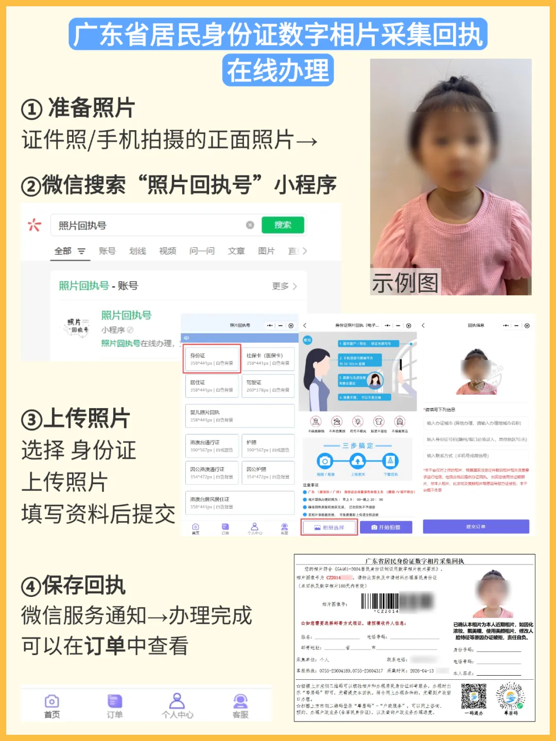 可以准备好一张露出五官的正面照片,然后将照片上传到照片回执号微信小程序上,审核通过之后会生成数字相片采集回执,具体操作步骤如下图: