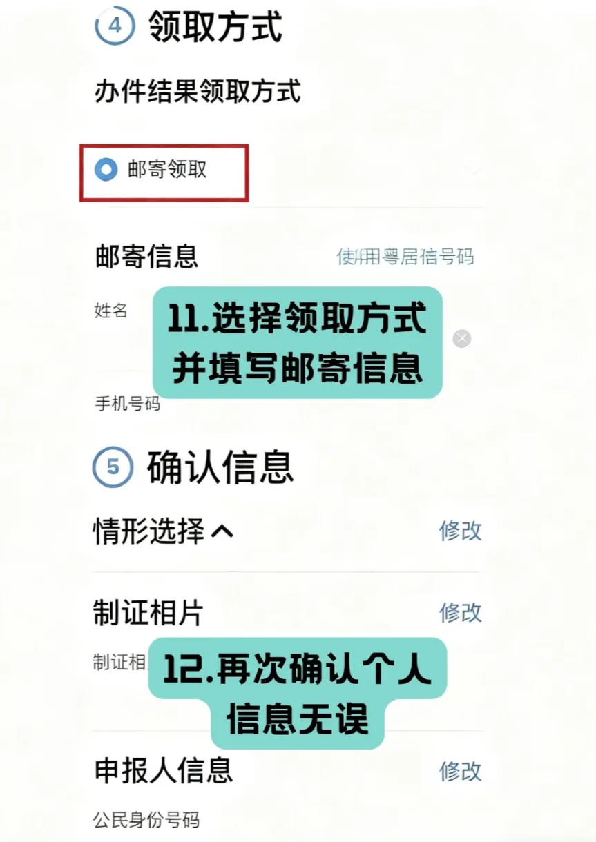 网上办理的身份证只能邮寄领取,需要填写详细的邮寄信息,然后确认个人信息无误后提交