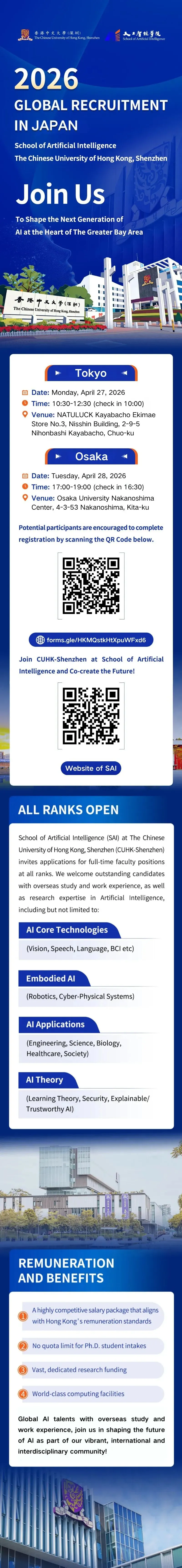 >香港中文大学(深圳)人工智能学院2026人才招聘会【大阪站】