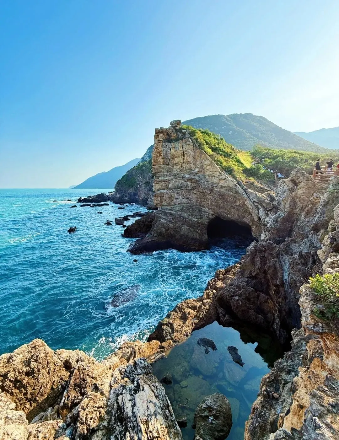 答应我,一定要挑大晴天冲这里!阳光就是这里最好的滤镜,晴空下的海水蓝得透亮,海浪一遍遍拍打着悬崖礁石,随手一拍都是治愈系大片。