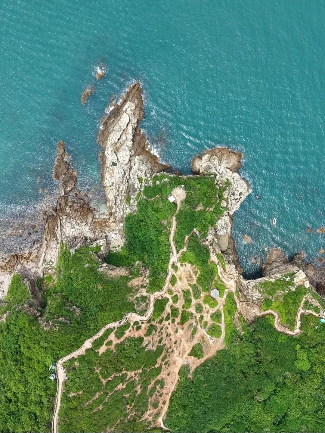 晴天的时候,湛蓝海水环绕着礁石,站在悬崖上方的平台俯拍,电影感瞬间拉满,不管是拍背影、剪影还是全景照,每一张都美到出圈,来鹿嘴山庄不来这里,等于白来一趟!
