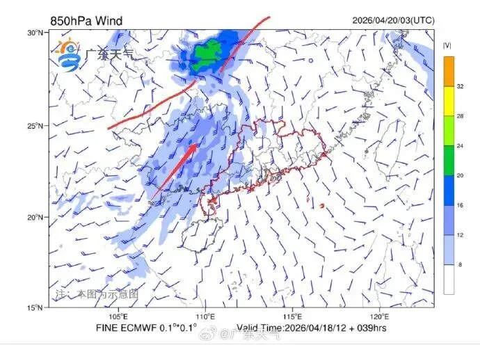 据“广东天气”消息,预计4月20日,中层槽东移,低层有低涡切变,地面冷空气快速东移南下,韶关、清远、珠三角以西有中到强雷雨局部暴雨的对流性质降水,并伴有8-9级局地10级短时大风。