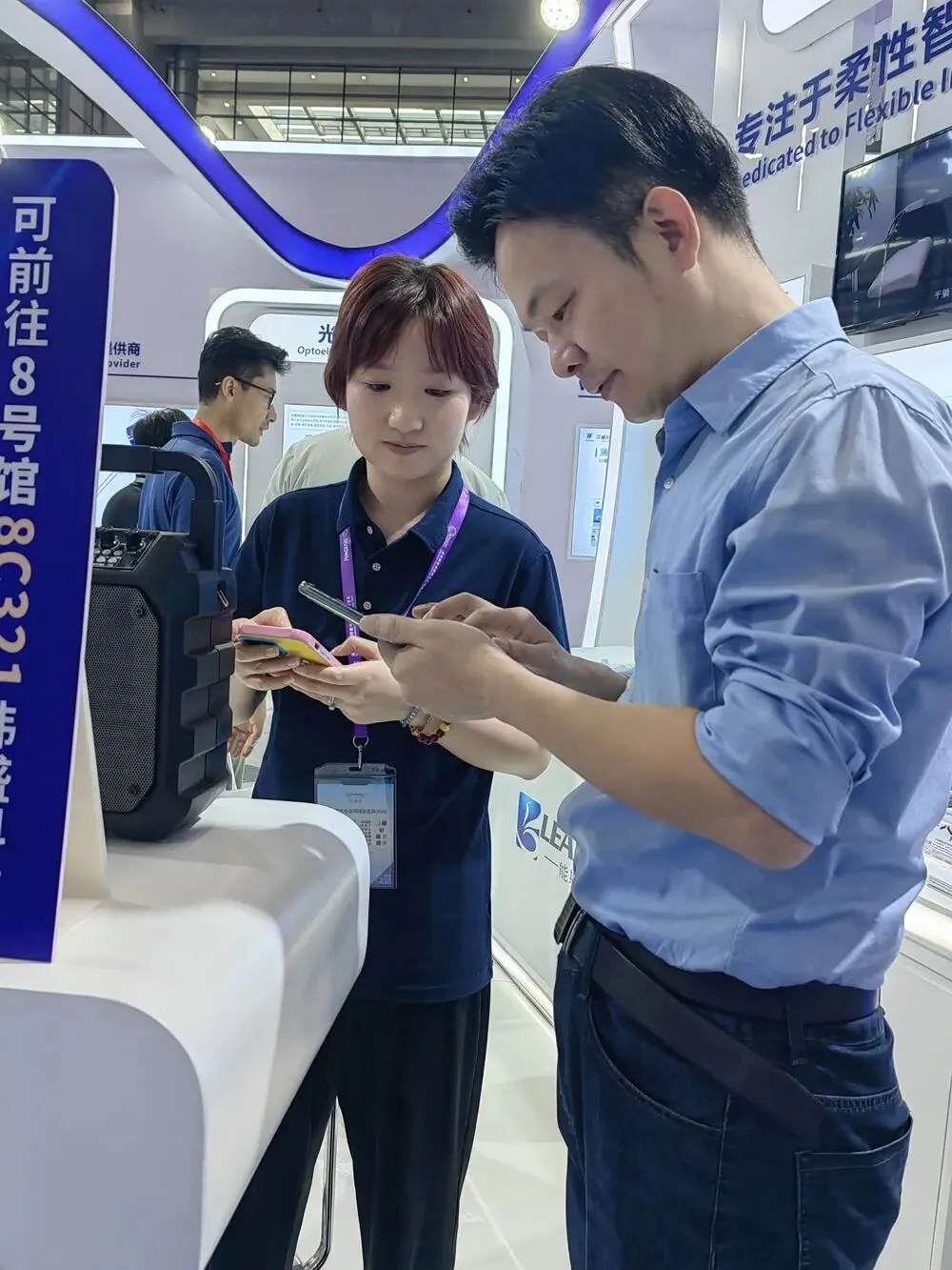 “汉威科技”与“电簇百科”负责人展会照片