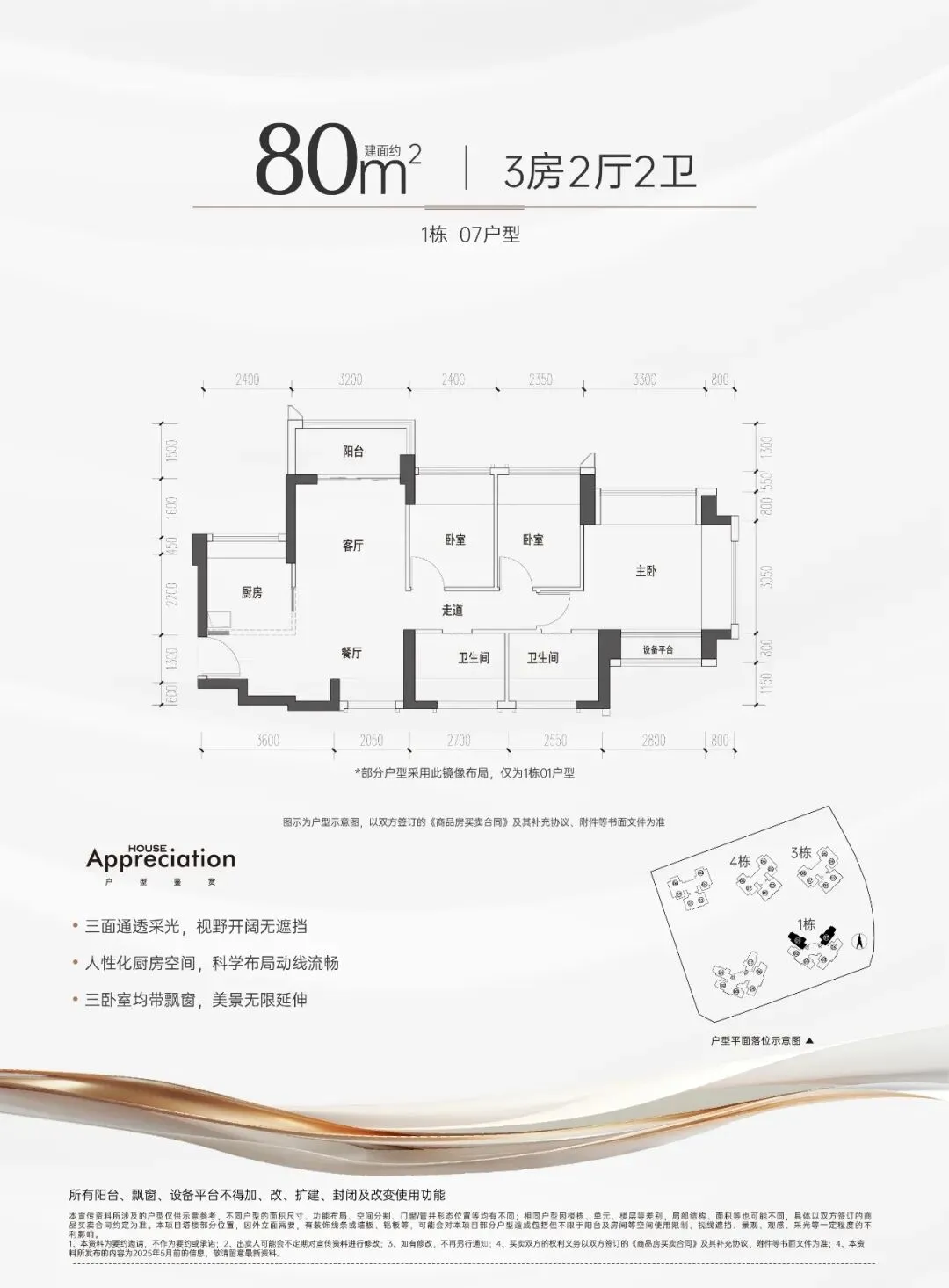 - 80㎡南北通透3房:横厅设计+5功能区横向采光,通风采光直接拉满,大主卧270°环幕观景,周末窝在沙发看河景,这才是生活该有的样子。