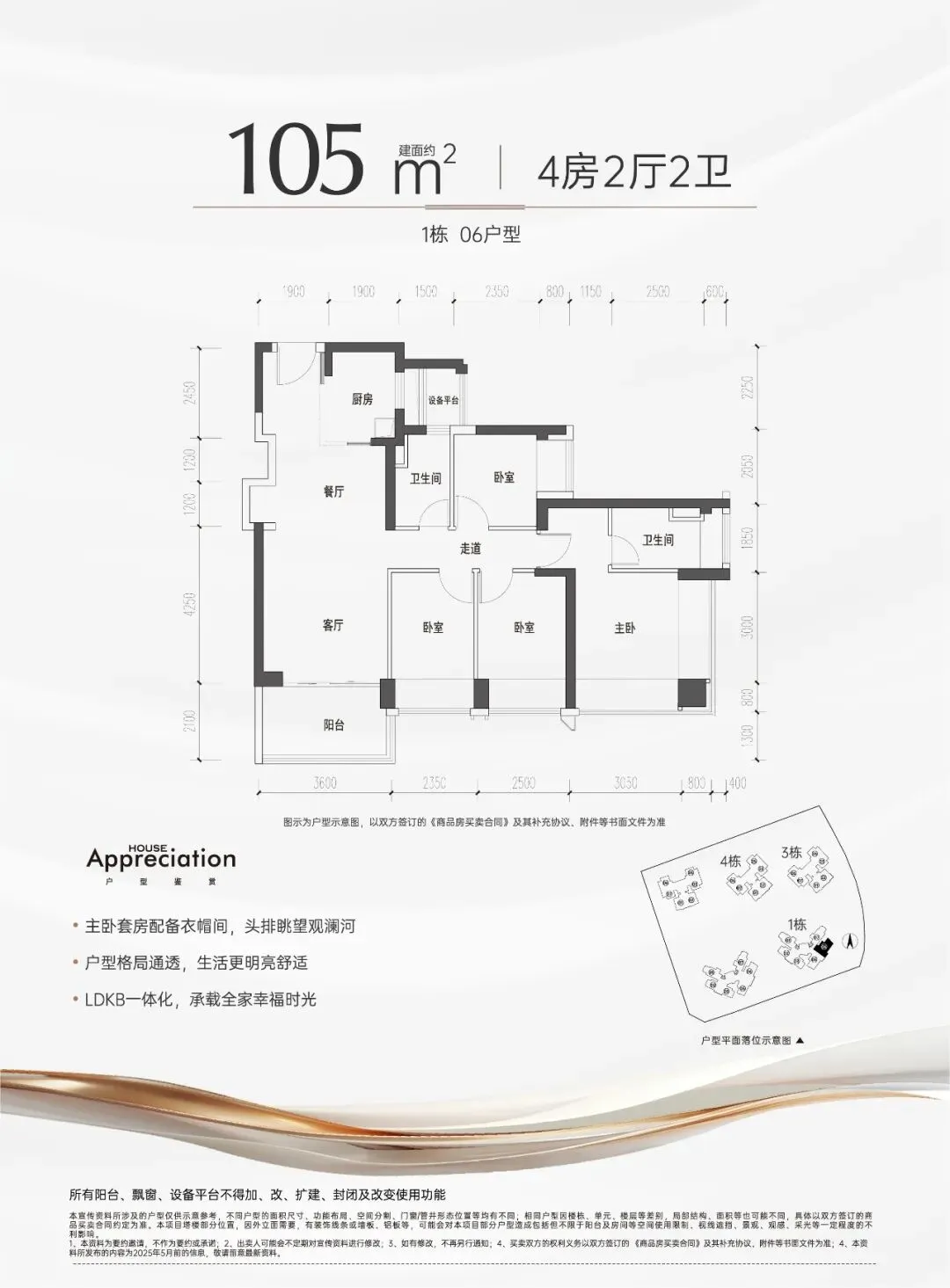- 105㎡东南向4房:四开间朝南+2.1米阔景阳台,一线无遮挡俯瞰观澜河碧道公园,五口之家也能住出大平层的通透感,二胎家庭/三代同堂一步到位。